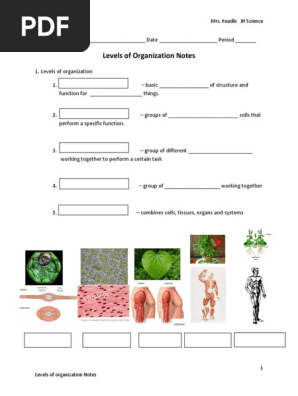 Worksheet: Levels of Organization. Living things are highly organized and structured, following a hierarchy that can be examined on a scale from small to ...