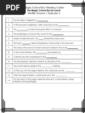 Magic School Bus: For Lunch Worksheet provides questions for students to answer during the movie / film | No description available. ...