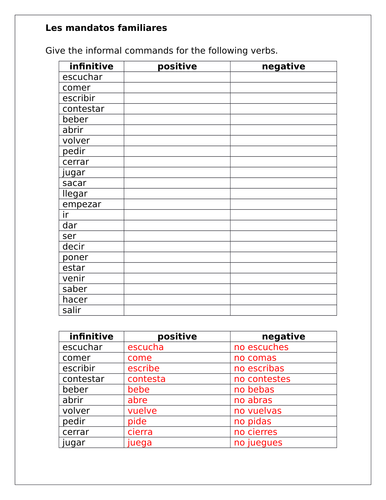 Results 1 - 24 of 303 — Practice affirmative and negative informal commands in Spanish with two worksheets. The first worksheet has students write the commands ...