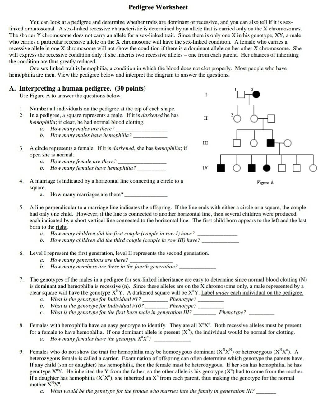 Pedigree worksheet answer key interpreting a human pedigree use the pedigree below to answer 1 5 1. Female unaffected female affected male unaffected male affected. Pedigree worksheet side 2 answers key pedigree worksheet side 2. How many males have hemophilia. What gave you the essential information to decide that ii 3 and ii 4 were heterozygous.