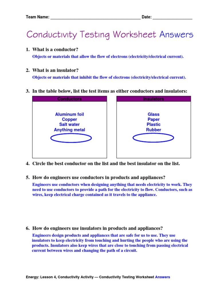 Conductors and Insulators Lesson Plan and Worksheet. Subject: Physics. Age range: 7-11. Resource type: Lesson (complete). 4.45 reviews.