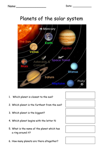 The Solar System and Planets - Little Worksheets. In this worksheet, we will explore a map of our solar system and label the 8 planets inside it. The Sun is already labeled for you. Word Bank . Earth . Jupiter . Mars . Mercury . Neptune . Saturn . The Sun . Uranus . Venus . Answer Key ©www.LittleWorksheets.com The Solar System and Planets . 1 ...