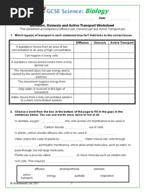 Check Pages 1-4 of Diffusion Osmosis and Active Transport Worksheet in the flip PDF version. Diffusion Osmosis and Active Transport Worksheet was published by on 2016-05-28. Find more similar flip PDFs like Diffusion Osmosis and Active Transport Worksheet. Download Diffusion Osmosis and Active Transport Worksheet PDF for free.