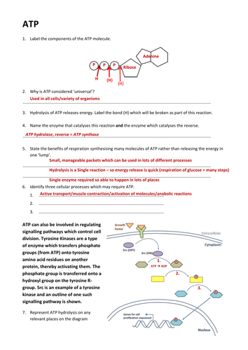 Atp Activity & Worksheets | Teachers Pay Teachers A hands on Teacher guided lesson to learn parts and function of ATP energy and how it connects to Cellular Respiration. The activity includes a student worksheet for them to work through as the teacher explains. There is a teacher answer key, as well as instructions for how to run and prepare for th