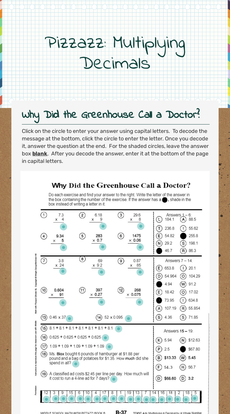 38 Why Did The Greenhouse Call A Doctor Math Worksheet Answers