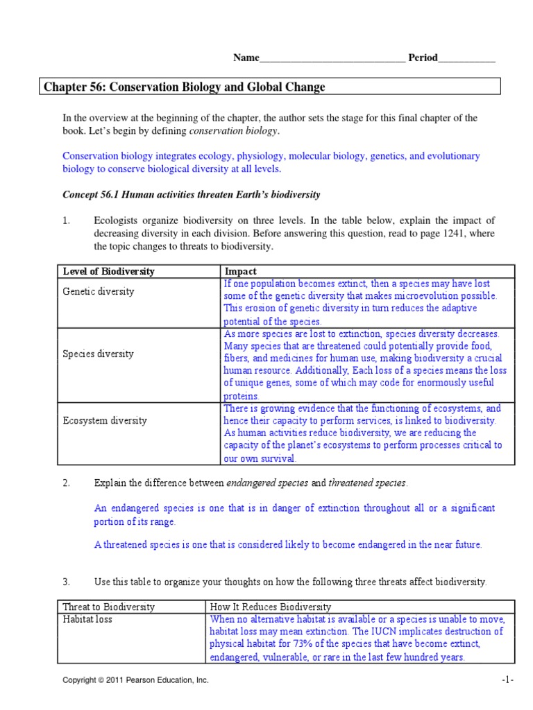 Ill be starting classes for spring session B. Is anyone here going into or already studying for this? I'd love to be able to ask some questions and get to know a few people before I start, especially to get a better idea of how classes work, some tips for survival and perhaps what the overall thought is for the degree program through ASU online. Honestly any advice is appreciated. Biological diversity and conservation worksheet answers vocabulary workshop level b unit 10 answers realidades 2 workbook answers pg 36 So we tried to find some terrific biological diversity and conservation chapter 5 worksheet answers image for you. Biodiversity refers to the variety of... http://www.eolss.net/Sample-Chapters/C20/ Or http://www.eolss.net/Sample-Chapters/C20/E6-142-CS-03.pdf • Conservation - is the sustainable use of resources and encompasses protection as well as exploitation and • Refers to conservation of ecosystems and natural habitats including maintenance and recovery of viable populations of species in their natural habitats.