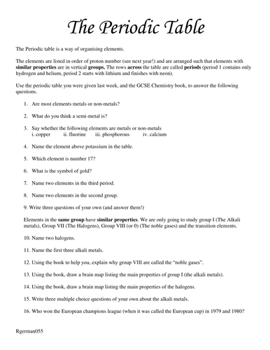 The periodic table worksheet answer key