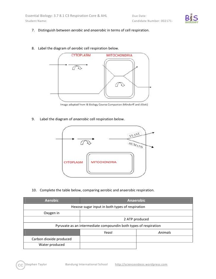 Cell processes. High School Biology Worksheets, Vocabulary ... Cell processes. High School Biology Worksheets and Vocabulary Sets. This topic is about life science. Students will learn to use a model to illustrate that cellular respiration is a chemical process whereby the bonds of food molecules and oxygen molecules are broken and the bonds in new compounds are formed resulting in a net transfer of energy. PDF Enzymes And Cellular Respiration Worksheet Answers Energy, Enzymes and Metabolism HBio Unit 03 Review: Energy, Enzymes, Cellular Respiration and Photosynthesis Enzymes And Cellular Respiration Worksheet This project needs to be supervised by an adult or professional because ethanol, a volatile substance is extracted from starch plants. Chapter 2 cell processes and energy worksheet? - Answers There are several unique cell processes that require energy. order to synthesize cellular building blocks and grow. Why are mitochondria called the powers houses of cell? They produce energy for... PDF Answer Key. Photosynthesis and Respiration Photosynthesis and cellular respiration are important cell energy processes. They are connected in ways that are vital for the survival of almost all forms of life on earth. In this activity you will look at these two processes at the cellular level and explore their interdependence.