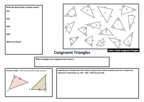 Geometry Worksheet Congruent Triangles Answers The triangles are NOT congruent. The key says "cannot be determined" because that is Proving triangles congruent - Math Worksheet Sep 29, 2021 · Two theorems useful to proving whether right triangles are congruent are the leg-acute (LA), and leg-leg (LL) theorems. Learn about the features of right triangles and how to use the LA and LL Angle ... Congruent Triangles Snowflake Activity Worksheet Answer ... Congruent Triangles Snowflake Activity Worksheet Answer Key Trainees can find out to gauge solids and also liquids with the help of preschool task worksheets. They are likewise able to make direct comparisons between different sizes. To the closest inch, they can learn to measure photos, types, as well as real-world things. Triangle Congruence Worksheet Answers - Worksheet Smart Complementary and supplementary word problems worksheet. Therefore creativity is essential for worksheets to be prosperous. Congruent Triangles Worksheet Congruent Triangles Worksheet Triangle Worksheet Word Problem Worksheets The worksheets may also be prepared according to the demands of the kid. Triangle congruence worksheet answers. Before look at the worksheet if you would like to know ... Congruent Triangles Worksheet With Answers Congruent Triangles Worksheet With Answers October 3, 2021 admin Learn about the appearance backdrop acclimated to analyze the names of altered approved and aberrant polygons, such as triangles or hexagons. This assignment includes: Created in affiliation with GCSEPod