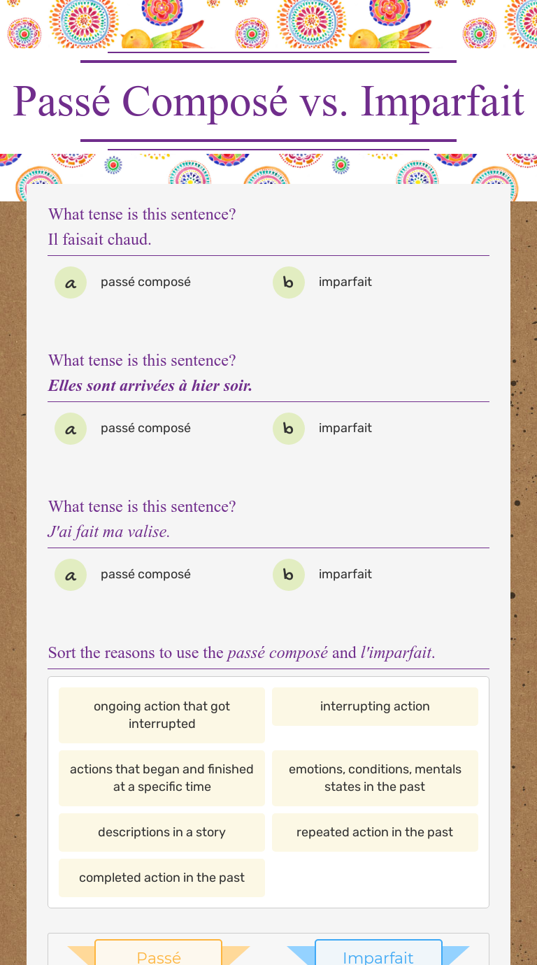 Imparfait vs passe compose worksheet