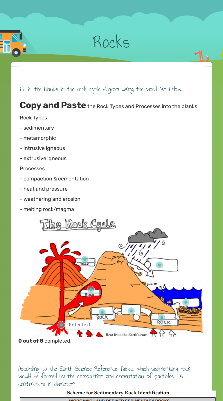 PDF Rocks the Reference Tables - Science Olympiad Rocks and the Reference Tables Use the rock identification charts on pages 6-7 of the Earth Science Reference Tables to answer the following questions Scheme for Sedimentary Rock Identification 15. Name the three major groups of sedimentary rocks (refer to their textures). _____ 16.