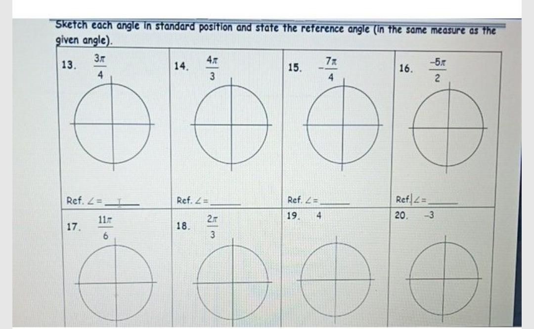Angles Standard In Worksheet Position Rpdp Answers [X5APUN] There are several different sections to look through, including grammar, vocabulary, and worksheets for children and students. Angle ABC is given to be 45 degrees Question 1172619: Sketch an angle in standard position that is π/3 radians. Basically, any angle on the x-y plane has a reference angle, which is always between 0 and 90 degrees.