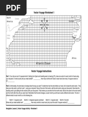 Cub Navigation Lesson02 Activity1 Worksheet Vector Voyage1 ... Vector Voyage Worksheet 1 North America. Canada NW. England NE. Europe. SW. SE. Portugal Spain Start! United States. Africa Cuba. Atlantic Ocean Vector Voyage Instructions. Part 1: Your ship can sail 10 squares/month. Starting from Spain and travelling west (or bearing 270), draw one vector for each month of travel using your red pencil. In ...