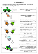 Forces Worksheet 1 - StudyRes Circle the best answer: 1. The forces shown above are PUSHING / PULLING forces. 2. The forces shown above are WORKING TOGETHER / OPPOSITE FORCES. 3. The forces are EQUAL / NOT EQUAL. 4. The forces DO / DO NOT balance each other. 5. The resultant force is 1000 N TO THE RIGHT / 1000 N TO THE LEFT /ZERO. 6. There IS / IS NO motion. 1 7.
