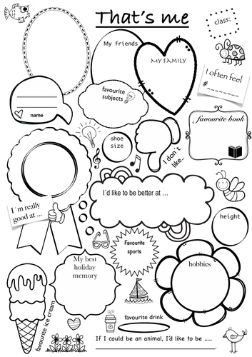 8 All About Me Activity Ideas - Teaching Made Practical 2. All About Me Bag. This fun activity is similar to show and tell and makes great "homework" for the first week of school. Have students choose 3 items that are important to them and put them in their "All About Me" bag. Then, students will present their items to the class. Students will love showing off items that are important to them. All About me worksheet for middle school - Clinical Worksheets How does an all about me worksheet for middle school help? An all about me worksheet for middle school will help you understand your strengths, weaknesses and other qualities that make you both similar and unique to others. Once you are aware of this information, you can now successfully navigate through middle school. All About Me - Classroom Freebies | All about me worksheet, Back to ... All About You Description There are 20 fill in the blank questions so that students can practice the sequence of tenses in Spanish. There is an instructional worksheet under my Sequence of Tenses category which has 35 fill in the blank questions. This worksheet is to help students get more practice, but there is no instructional worksheet with it. All About Me! | Worksheet | Education.com All About Me! Let's get to know you! Have beginning writers complete this activity all about them, a great way to help practice handwriting and to hone creative writing skills. This also makes a great "icebreaker" activity for new classmates.