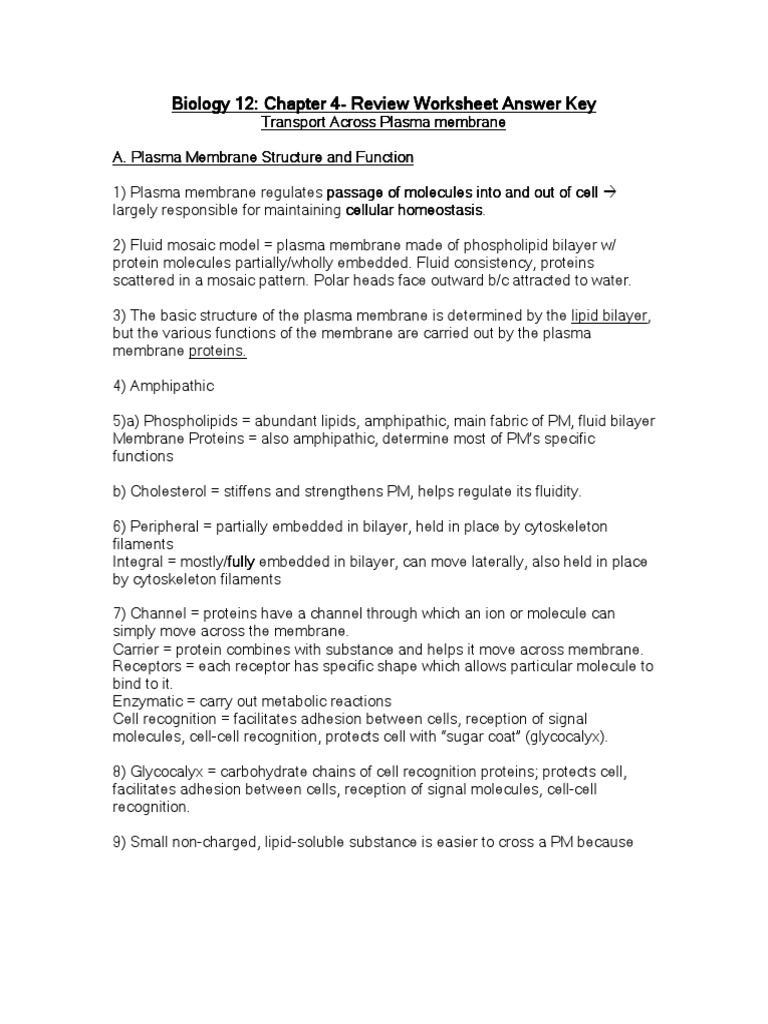 20++ Transport Across The Cell Membrane Worksheet Answer Key As biology transport across cell membrane_structure of the cell . Within a phospholipid, which part is polar. Source: dotpound.blogspot.com. Cells transport key answer packet water molecules move pdf coursehero hw biology. Membrane cell transport worksheet answer key graphic across. Source: studylib.net Composition Of The Cell Membrane Functions Worksheet Answer Features * Introduces biologists to membrane structure and physical chemistry * Introduces biophysicists to biological membrane function * Provides a comprehensive view of cell membranes to students, either as a necessary background for other specialized disciplines or as an entry into the field of biological membrane research * Clarifies DOC Cell Membrane Worksheet - BIOLOGY 2018-2019 The multiple different structures that make up the cell membrane can freely move horizontally through the membrane which is why it is called a fluid mosaic. When phospholipids move, they allow water and other molecules to pass through into or out of the cell. This is known as simple diffusion because it does not require energy,