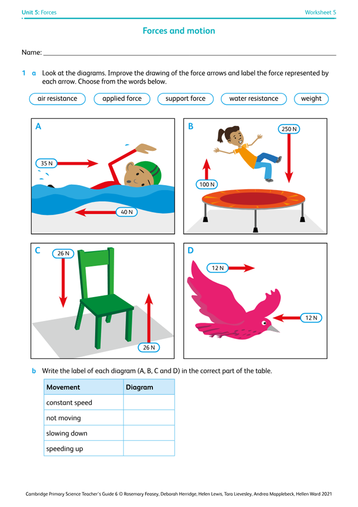 Forces & Motion Worksheets | K5 Learning Worksheets Science Grade 3 Forces & motion Forces & Motion Unbalanced forces cause movement These grade 3 science worksheets examine balanced and unbalanced forces, and why the latter causes motion. Gravity and friction are also reviewed. Force and motion Pushes, pulls and the motions they cause. Balanced and unbalanced forces
