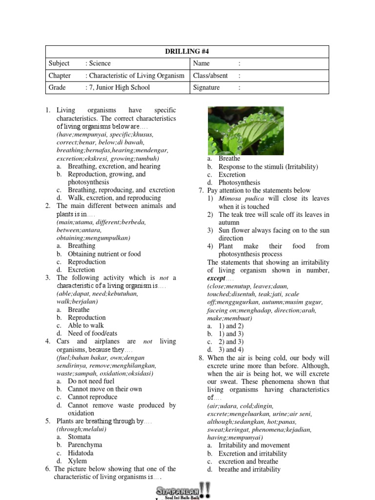Living thing needs and characteristics - Liveworksheets Living thing needs and characteristics Activities to differenciate needs and characteristics of the living things. ID: 1685587 Language: English School subject: Science Grade/level: grade 1 Age: 6-8 Main content: Living things Other contents: LIVING THINGS Add to my workbooks (3) Download file pdf Embed in my website or blog Add to Google Classroom study.com › academy › practiceQuiz & Worksheet - Characteristics of Living Things | Study.com Learn more about living organisms by reviewing the corresponding lesson on the Characteristics of Living Things. These objectives will be covered in detail: Discover various methods of reproduction