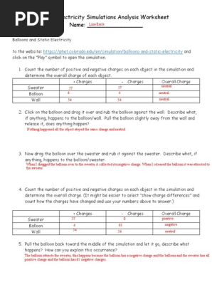 Charge and electricity worksheet answers